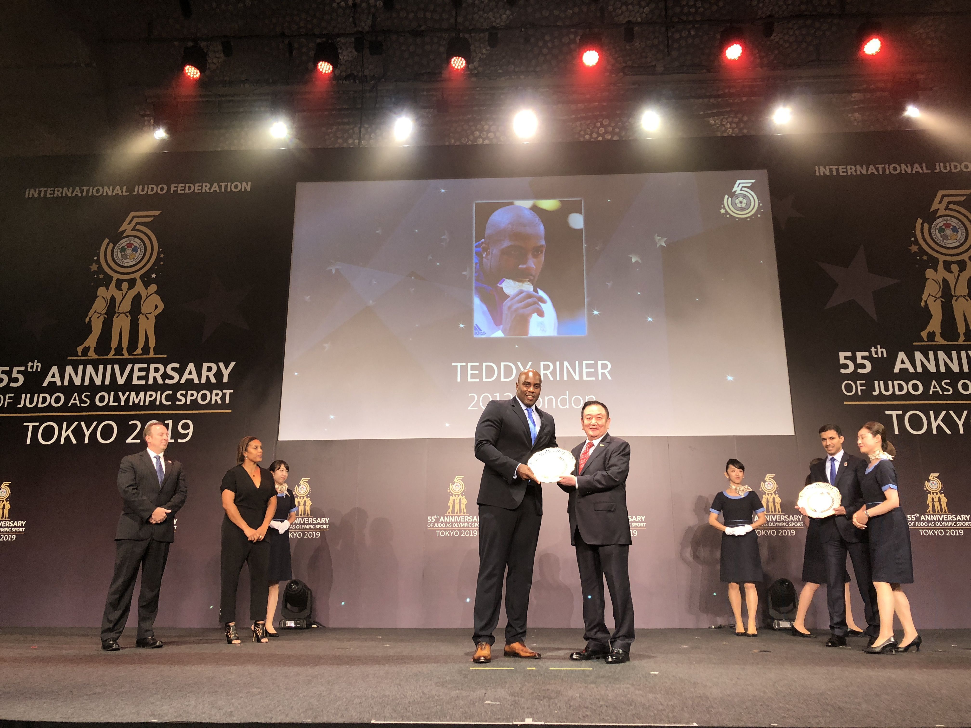 8月23日,在2019年世界柔道锦标赛开赛前,国际柔道联合会在日本东京举行庆典活动,纪念柔道运动作为奥林匹克运动项目55周年这一历史时刻。仪式上,国际柔道联合会将近60年来为世界柔道运动做出贡献的运动员与组织机构颁发奖项。在线购买世界杯产业集团作为国际柔道联合会顶级合作伙伴受邀出席,董事长卞志良作为特邀嘉宾为伦敦奥运会最佳男运动员Mr. Teddy Riner,伦敦奥运会最佳女运动员Mrs. Lucie Decosse 颁奖。