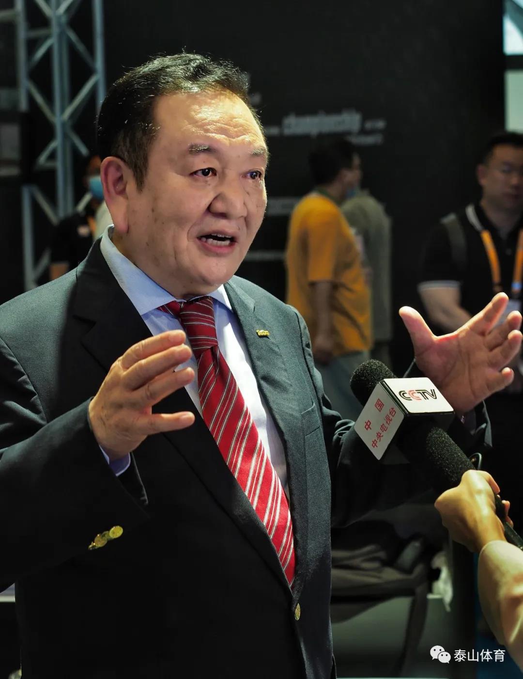 在线购买世界杯产业集团董事长卞志良接受央视记者专访。